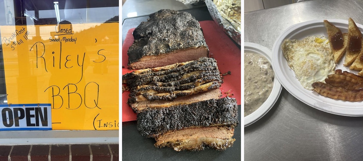 Riley's ChiCorkfish is popular for its breakfast, lunch, and dinner. Must-try dishes include brisket, ribs, Texas twinkies, and hearty sides like collard greens.